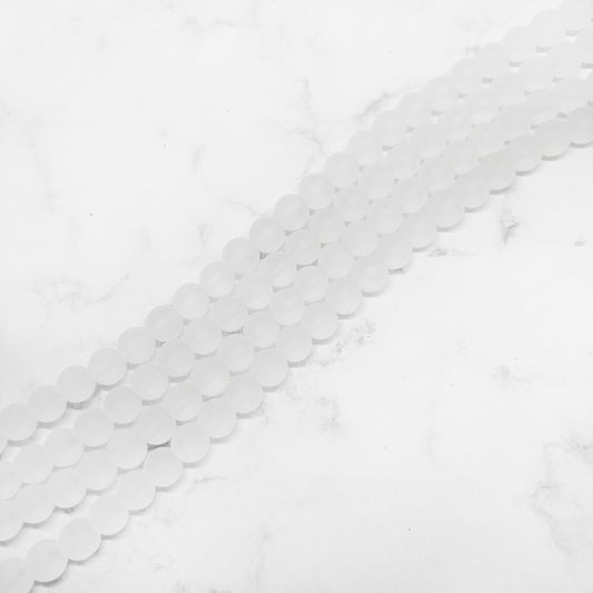 Perla de vidrio matte transparente - 8mm - Tira 50und aprox. - Blanco