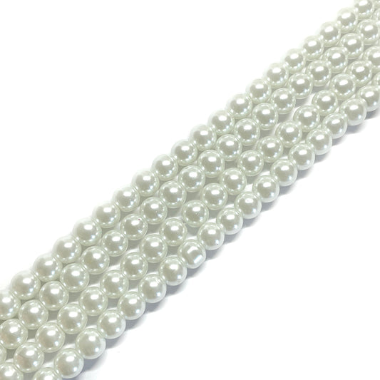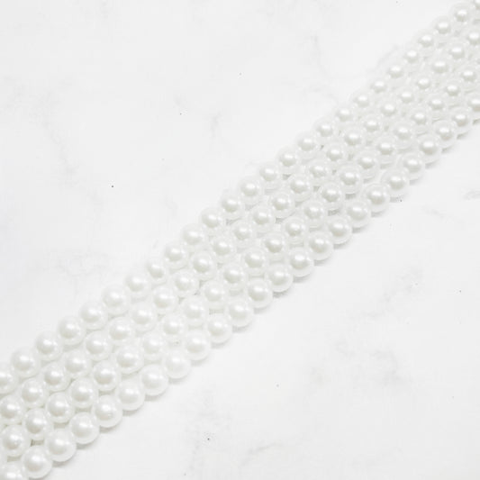 Perla de vidrio brillante - 6mm - Tira 65und aprox. - Blanco
