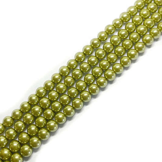 Perla de vidrio - 8mm - Tira 50und aprox. - Verde Oliva
