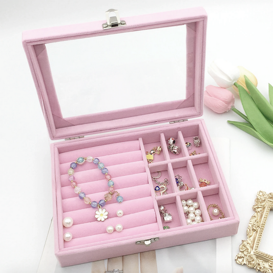 Joyero caja de terciopelo - 20x15x5cm - Rosado