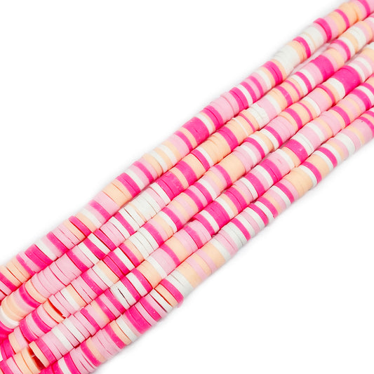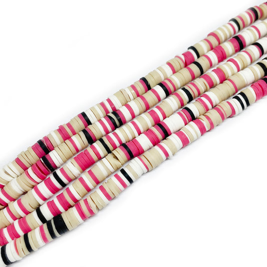 Cuentas de Fimo - 6x1mm - Fucsia Crema y blanco