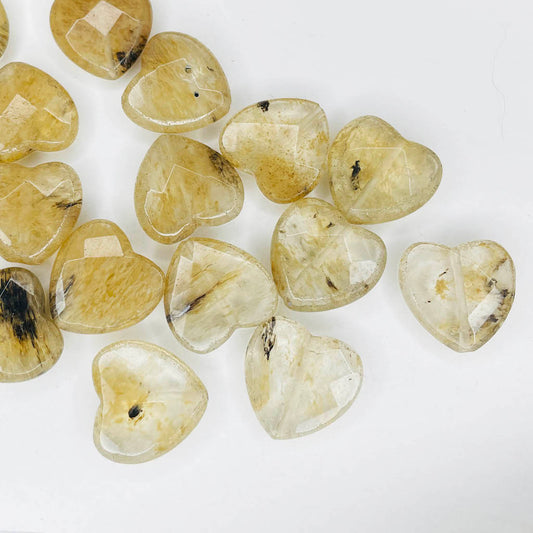 Set de Corazones Facetados - 18mm - Cuarzo Rutilado - 4und