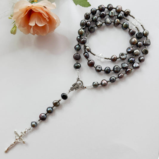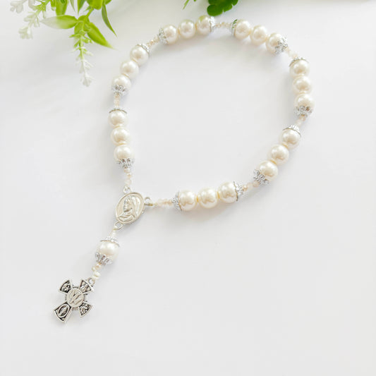 Rosario católico Perlas Blancas - Flor Café - 1und