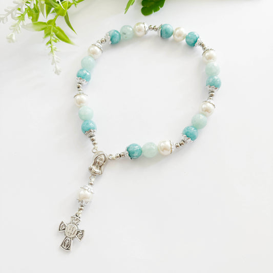 Rosario de la Paz Tonos Turquesa y Perla - 1und