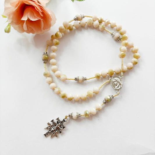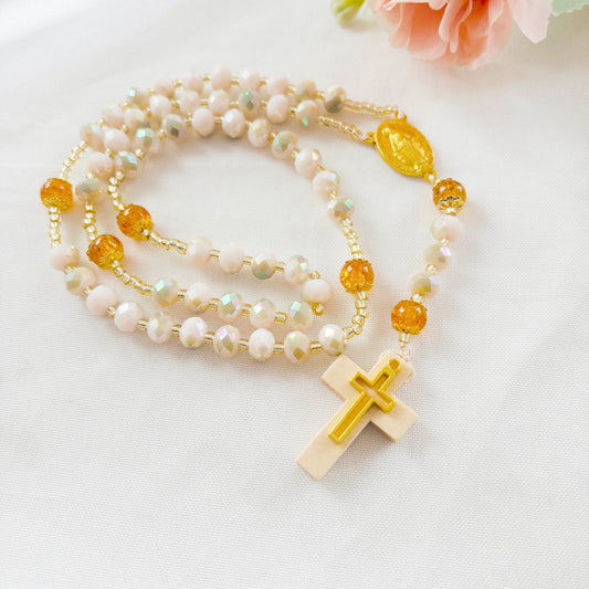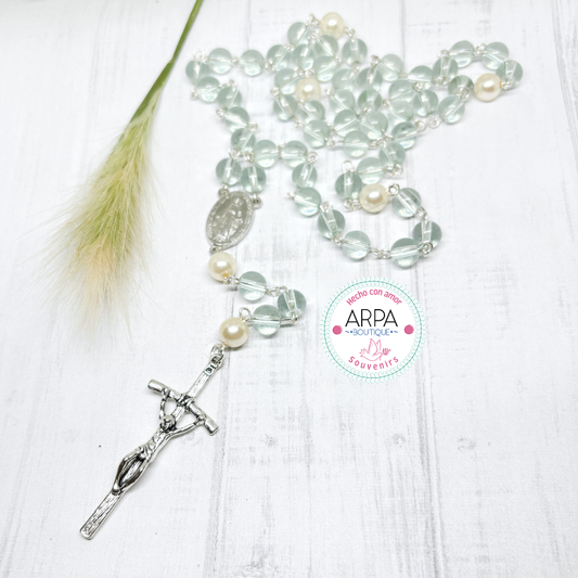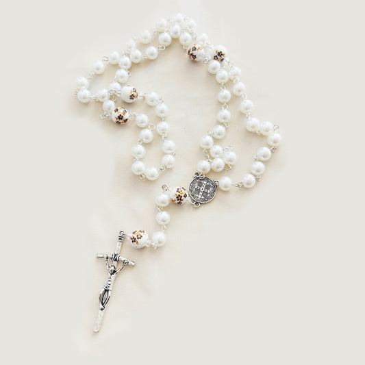 Rosario católico Perlas Blancas - Flor Café - 1und