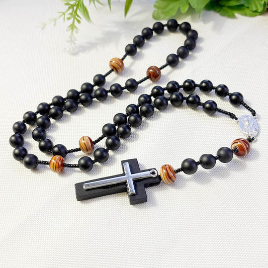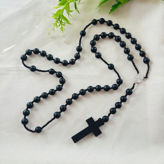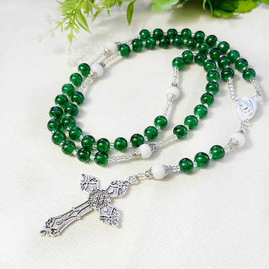 Rosario católico cuentas verdes y cruz gótica - 1und