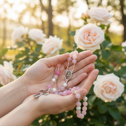 Rosario católico Agata Rosada Virgencita Plis - 1und