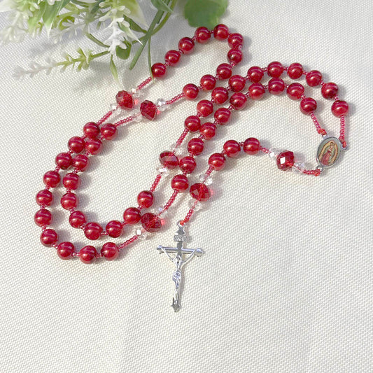 Rosario Howlita Blanca y Roja - Cuentas de piedra - 1und