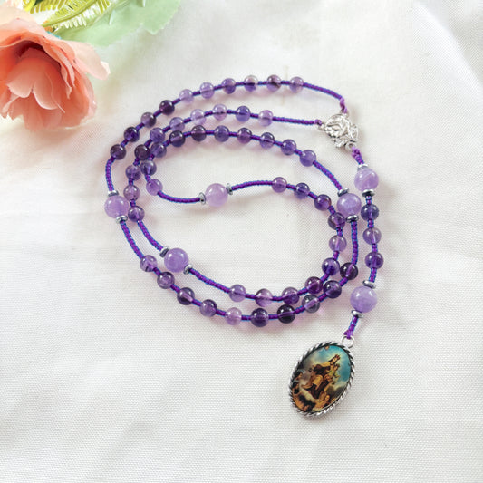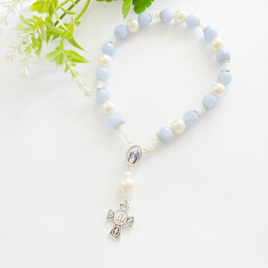 Rosario de la Paz Lavanda Azul con perlas - 1und
