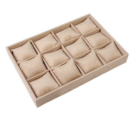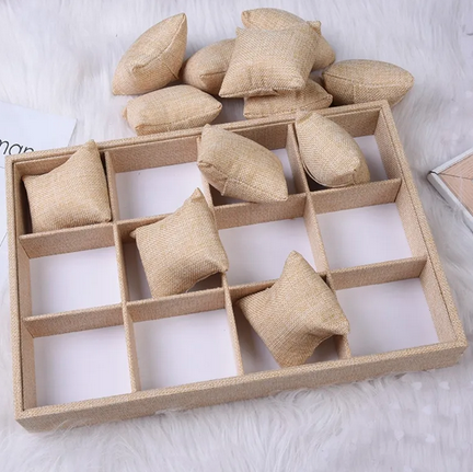 Exhibidor de pulseras tipo bandeja de 12 espacios con almohadas.