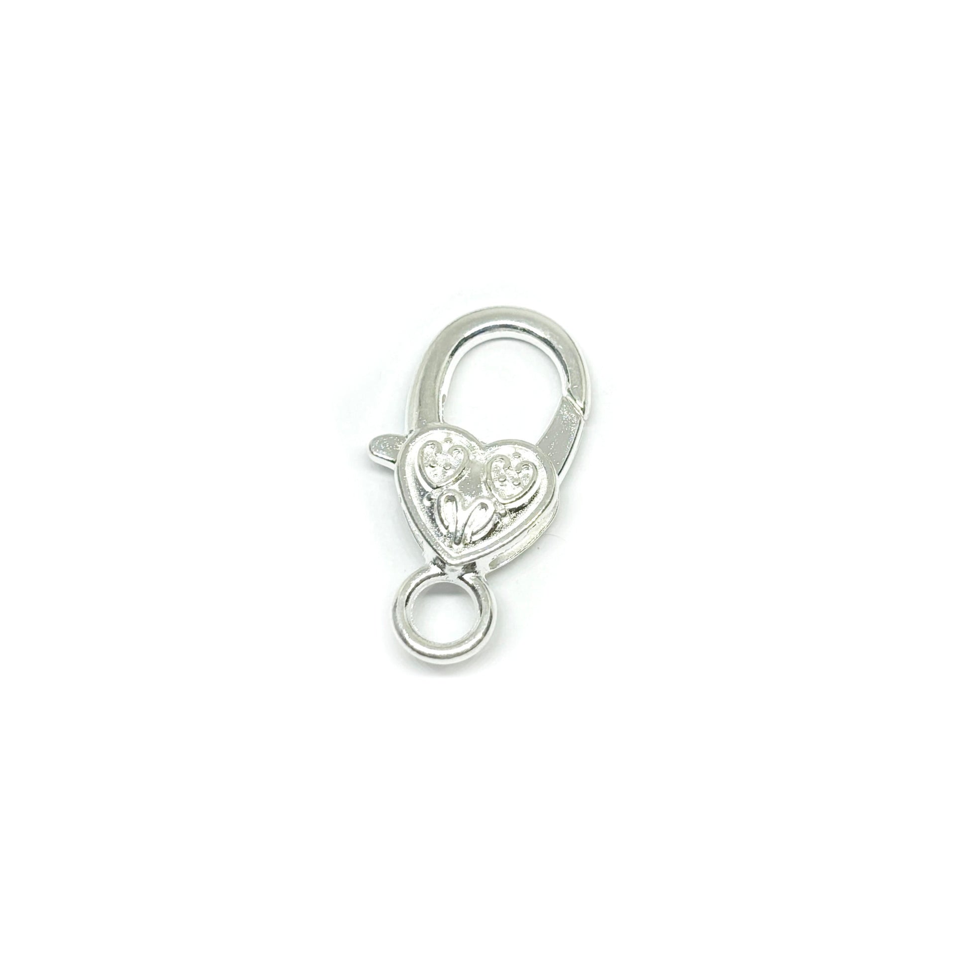 Broche Mosquetón grande Corazón - 25mm - Plateado - 1und