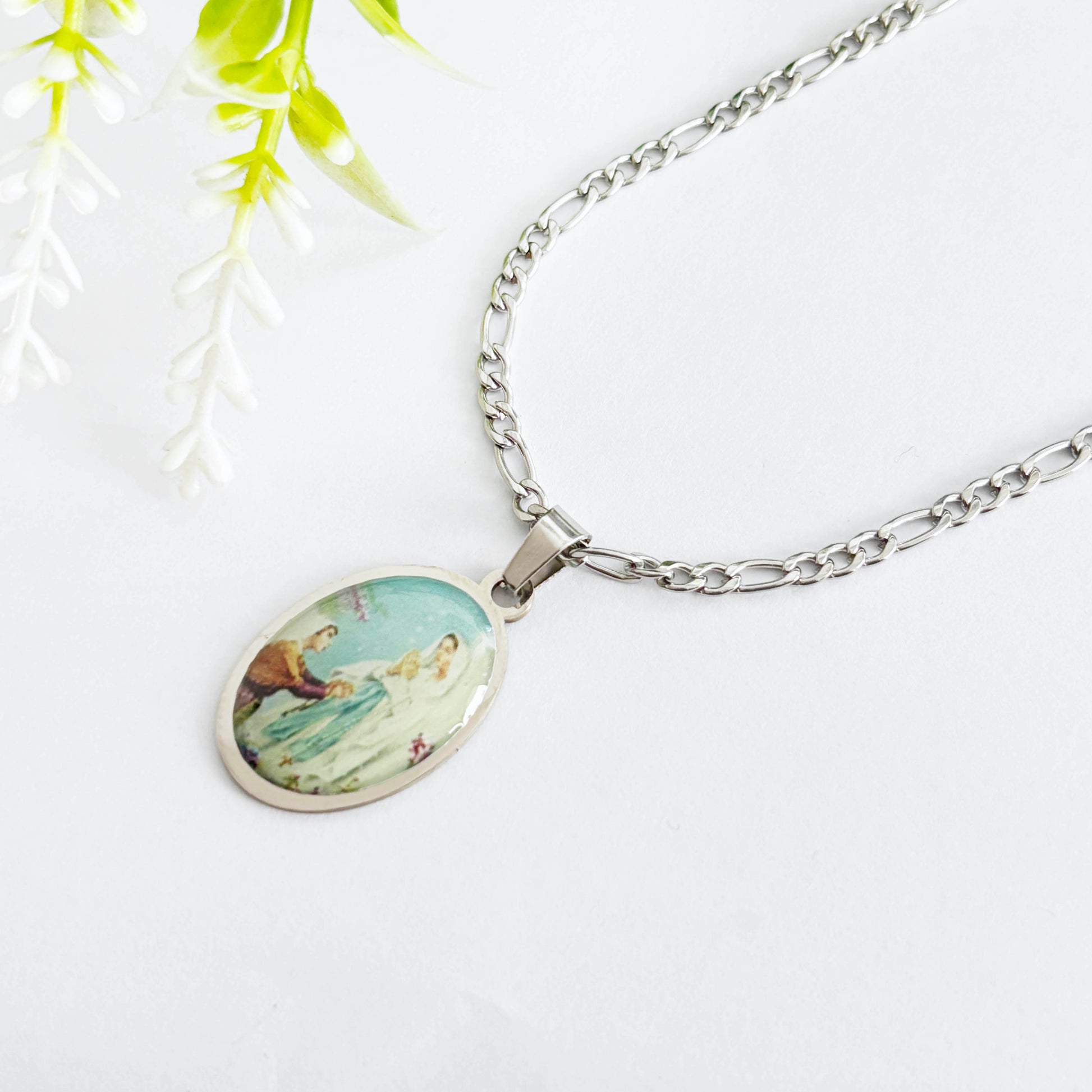 Cadena con medalla Virgen de Lourdes de Acero Quirurgico - 1und