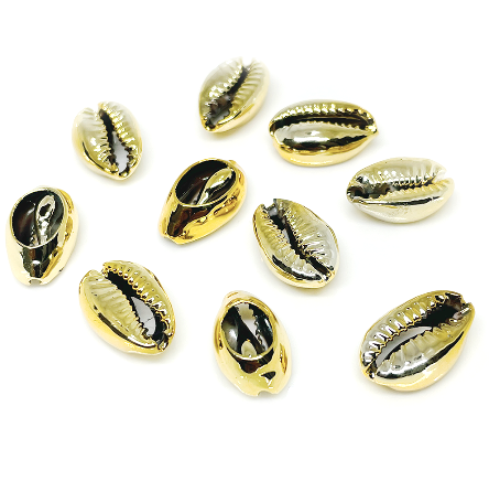 El valor de la publicación es por 10 conchitas doradas. Vienen en tamaños variables hasta 15mm de ancho.