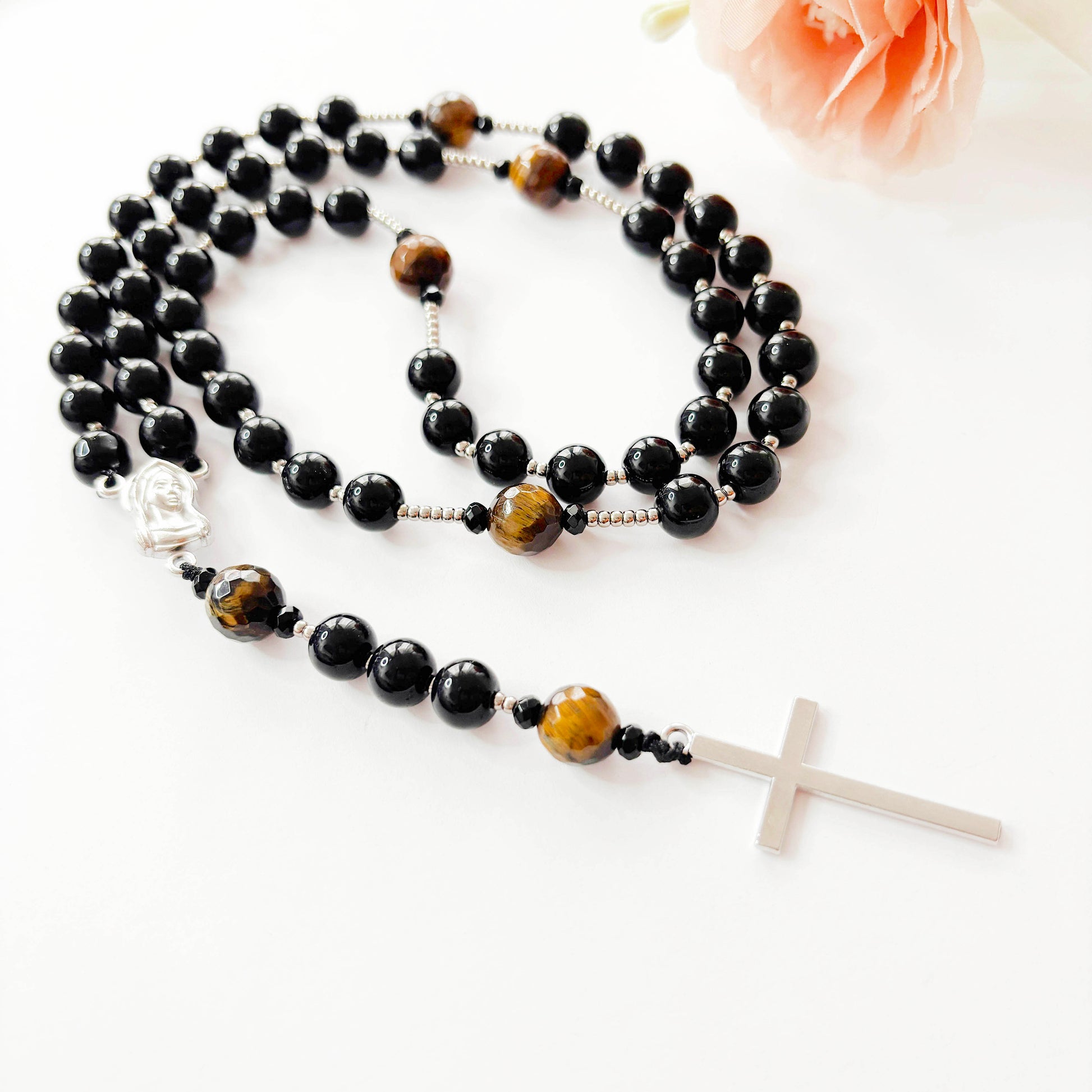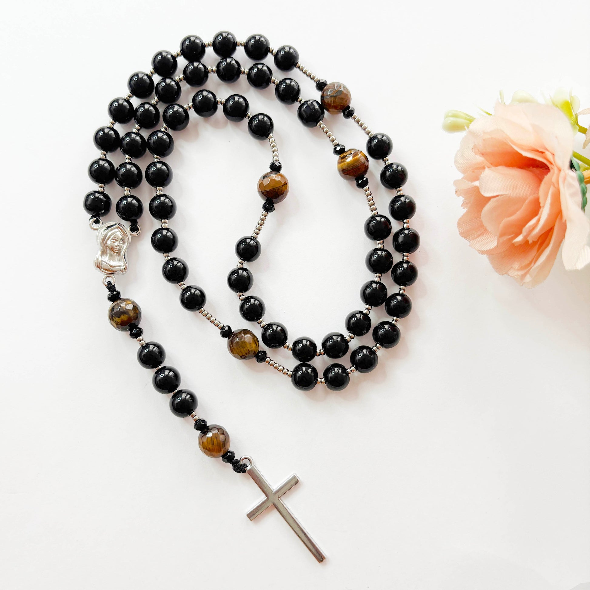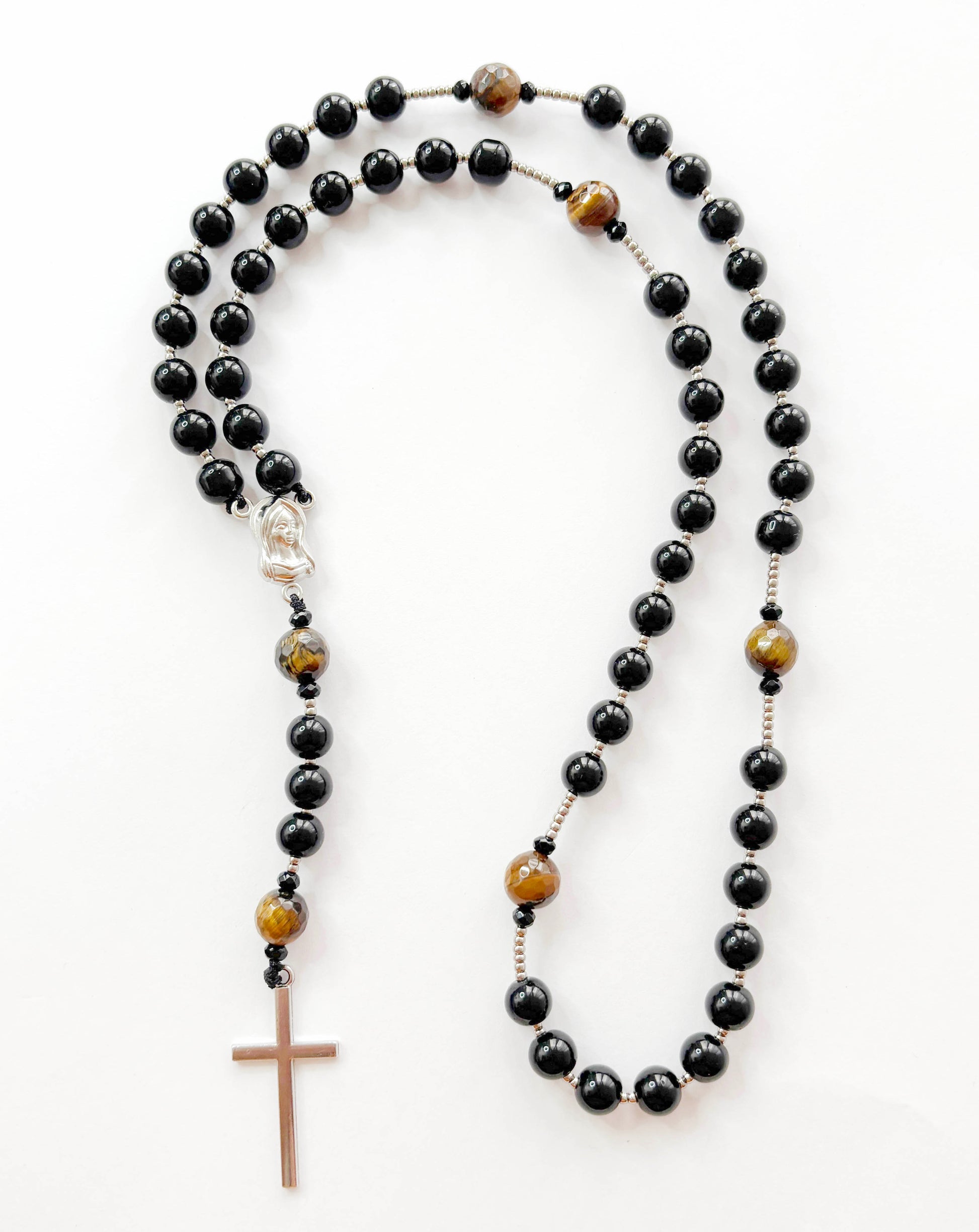 Rosario católico ónix y ojo de tigre - 1und