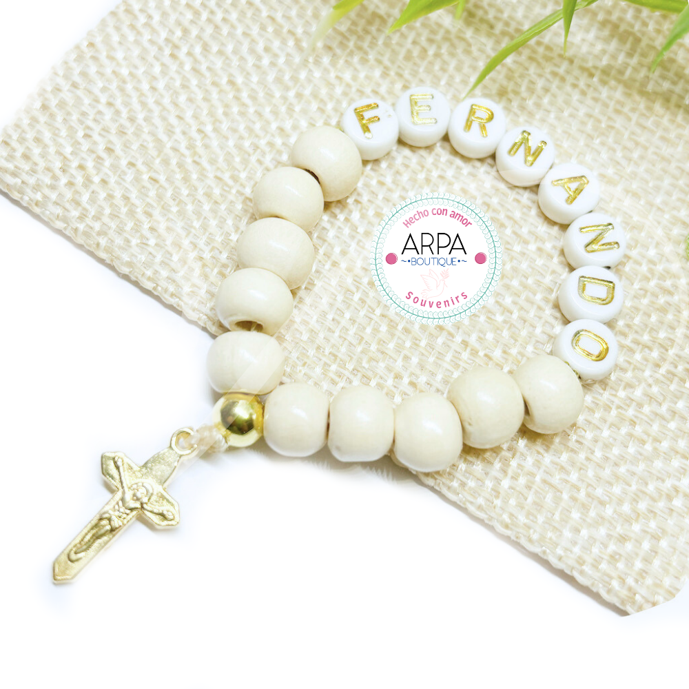 Denarios de madera con dije de cruz dorada, ideal para recuerdos de bautizos, comuniones, recuerdos luctuosos y misas.