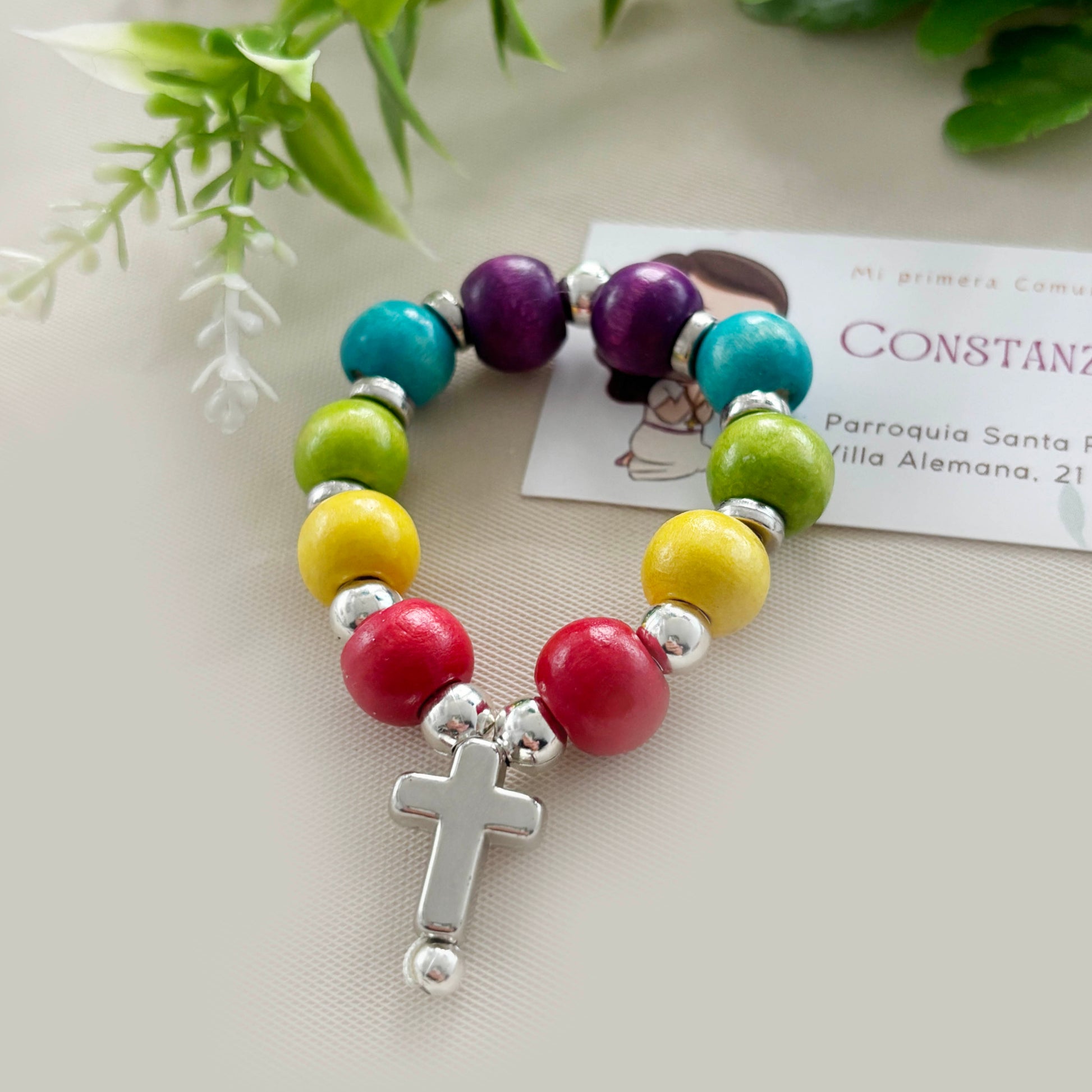 - Material: Bolas de Madera y Dije cromado (Imitación metal)