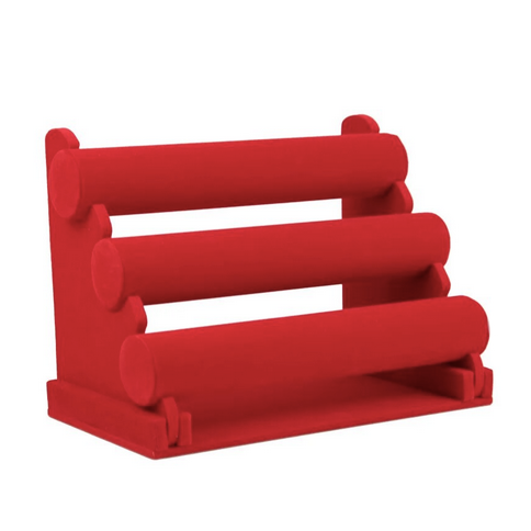 Exhibidor de 3 Niveles de terciopelo Rojo