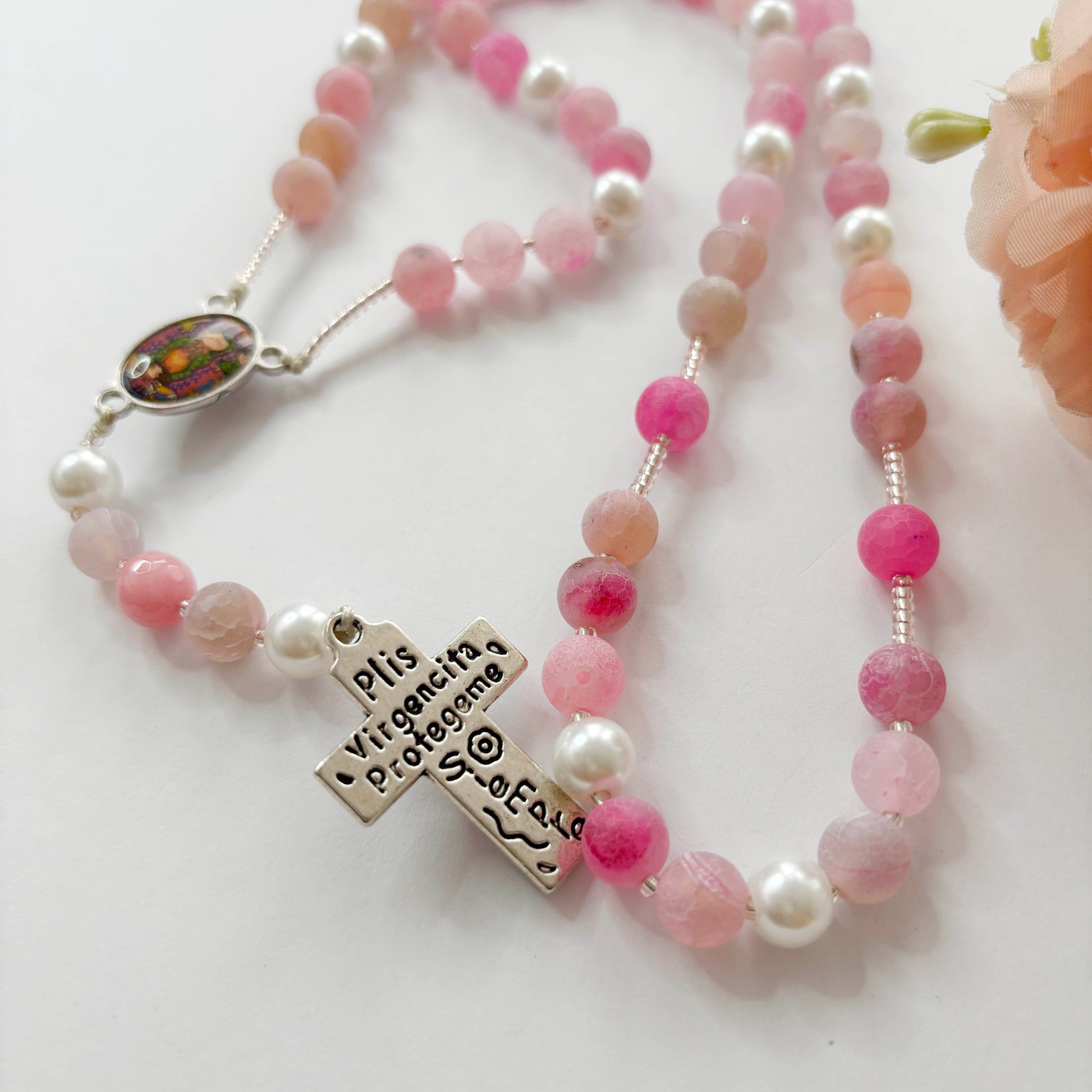 Rosario católico Agata Rosada Virgencita Plis - 1und