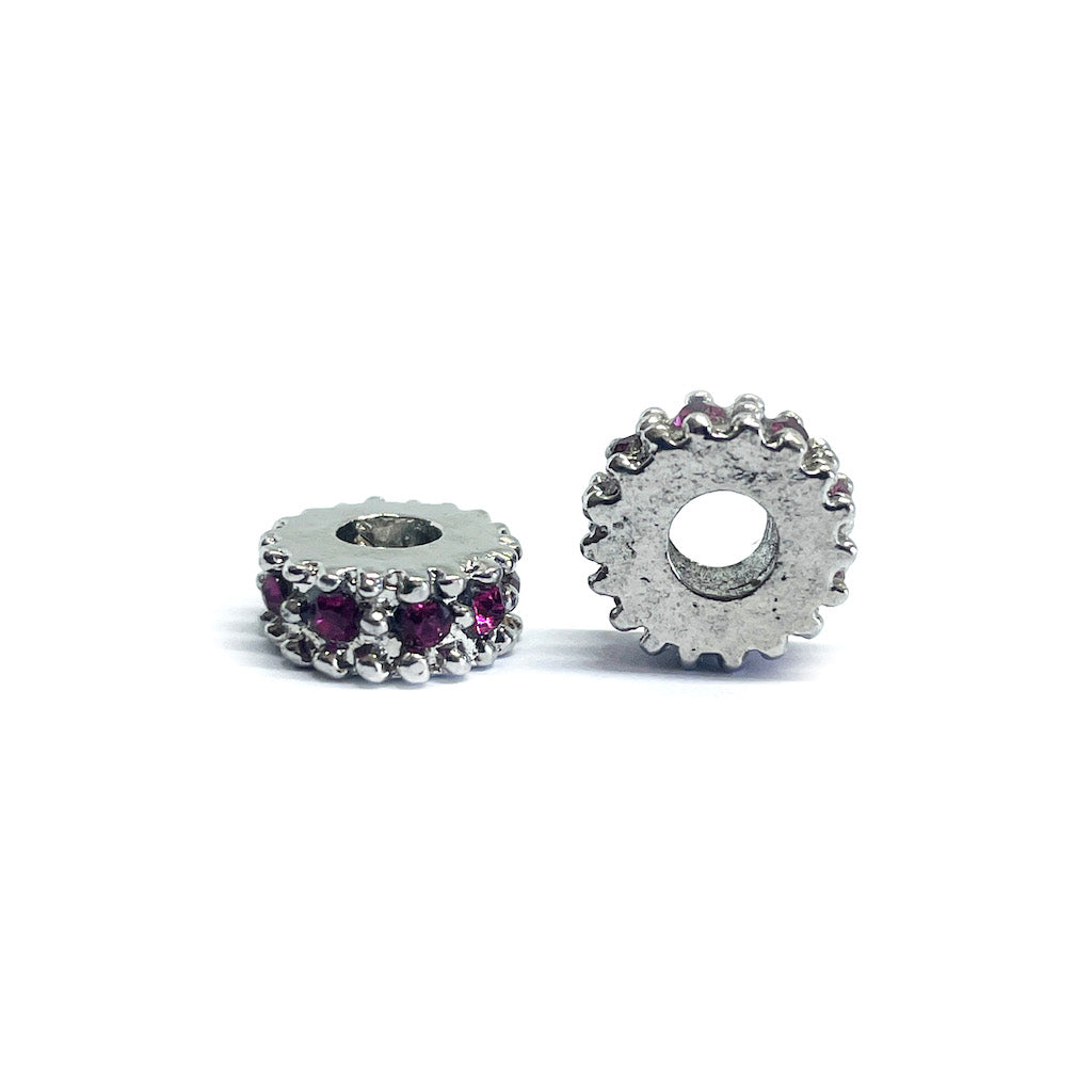 Separador Rueda Plateada con strass - 10mm - Fucsia - 1und